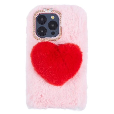 iPhone 15 Pro Fleksibelt Plastik Bagside Cover m. Pels - Hjerte - Rød / Pink