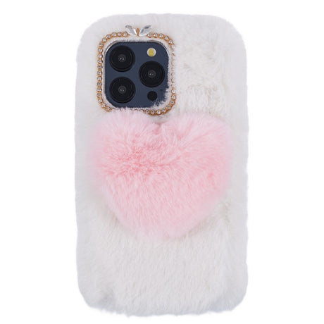 iPhone 15 Pro Fleksibelt Plastik Bagside Cover m. Pels - Hjerte - Rød / Hvid