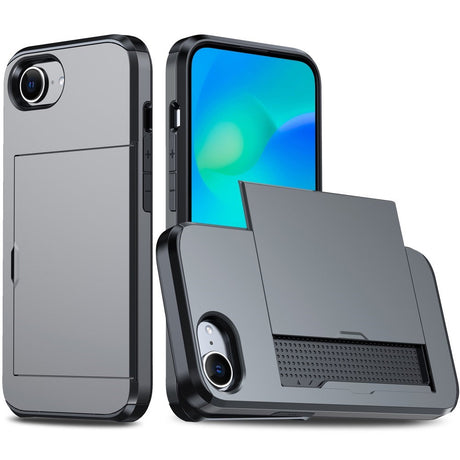 iPhone 16e Bagsidecover med Kortholder - Grå