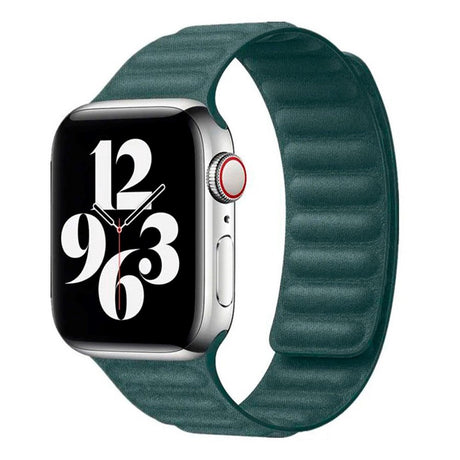 Apple Watch (42/44/SE/45/46/49 mm) magnetisk lærreim - mørkegrønn