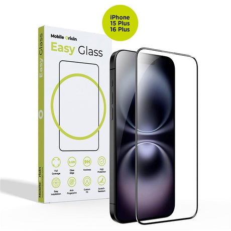 iPhone 15 Plus / 16 Plus Mobile Origin EasyGlass Skjermbeskytter - Gjennomsiktig / Black Edge