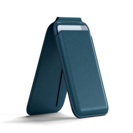 Magnetic Vegan Leather Card Holder m. Stativfunksjon - MagSafe-kompatibel - Blå