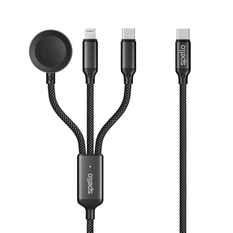 3-i-1 Multi-USB-C Kabel m. USB-C & Lightning & Apple Watch Oplader - Sort