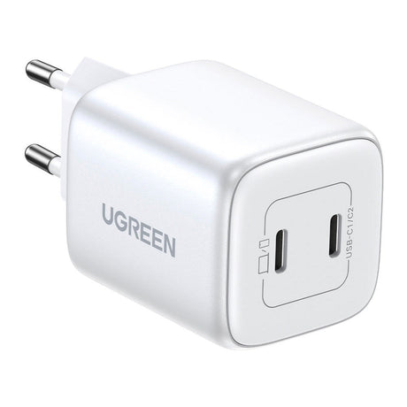 PD 45W USB-C GaN Fast Wall Charger m. 2 x USB-C - Hvit