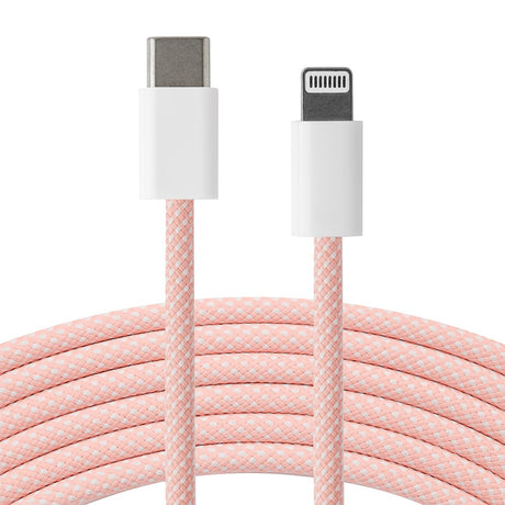 Braided USB-C til Lightning-kabel PD 60W - 2m - Rosa