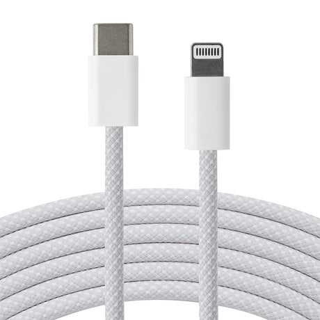 Braided USB-C til Lightning-kabel PD 60W - 2m - Hvit