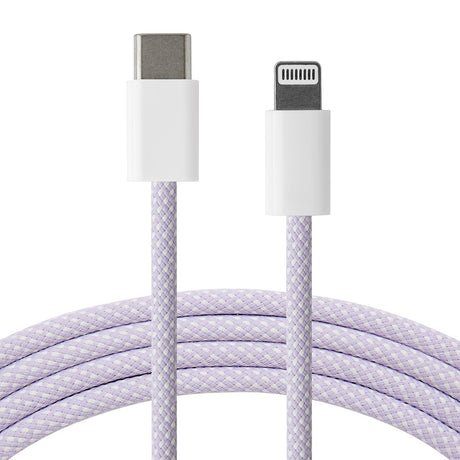 flettet USB-C til Lightning-kabel PD 60W - 2m - Lilla