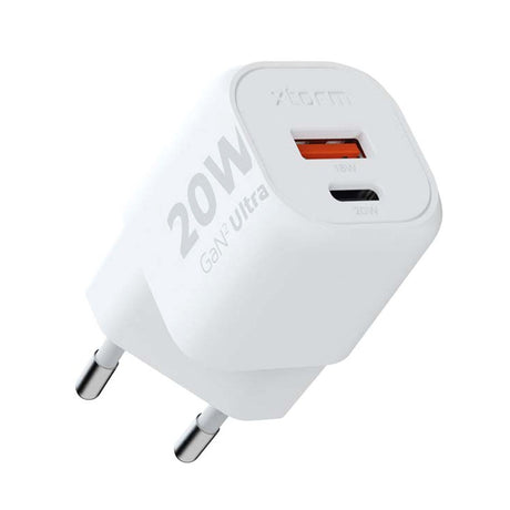 20W GaN² Ultra Fast Vegglader m. USB-A & USB-C - Hvit