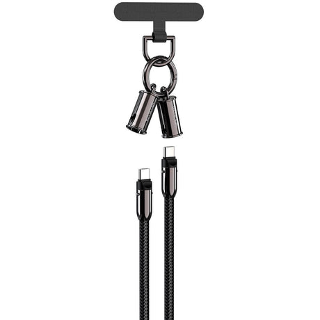 2-i-1 justerbar telefonstropp og USB-C til USB-C-kabel - Devia - Svart