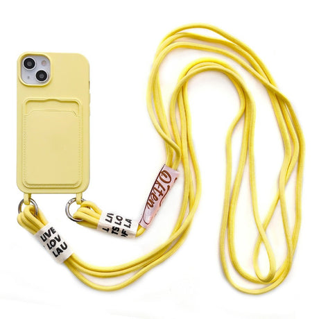 iPhone 14 fleksibelt plastdeksel m. Kortholder og snor - gul