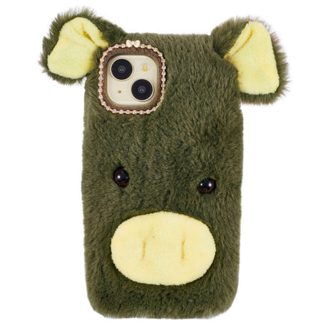 iPhone 15 fleksibelt plastdeksel m. Pels - Gris - Grønn / Gul