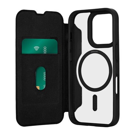 • Indbyggede kortholdere: Opbevar dine kreditkort og kontanter sammen med din iPhone 16 Pro Max.