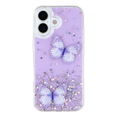 iPhone 17 Fleksibelt Plastik Mobil Cover m. Sommerfugle - Gennemsigtig / Lilla