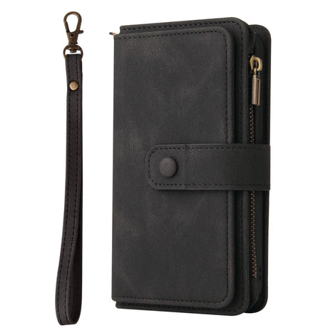 iPhone SE (2022 / 2020) / 8 / 7 Faux Leather Flip Cover - Stropp og lommebok m. 15 kortholdere - svart