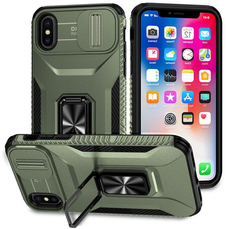 iPhone X / XS Craftsman Bakdeksel m. Magnetisk Kickstand & Cam Slider - Grønn
