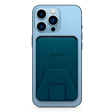 Magnetic Vegan Leather Card Holder m. Stativfunksjon - MagSafe-kompatibel - Blå