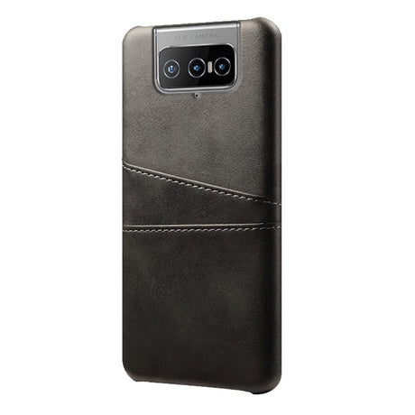 Asus Zenfone 8 Flip plastdeksel m. Skinndeksel og kortholder - svart
