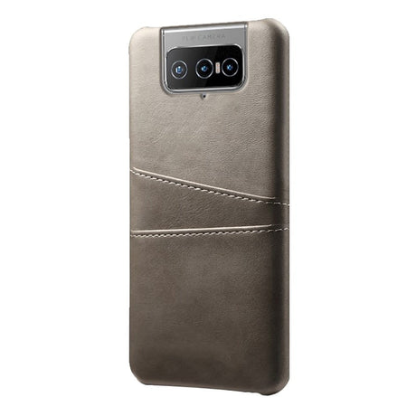 Asus Zenfone 8 Flip plastdeksel m. Skinndeksel og kortholder - Grå