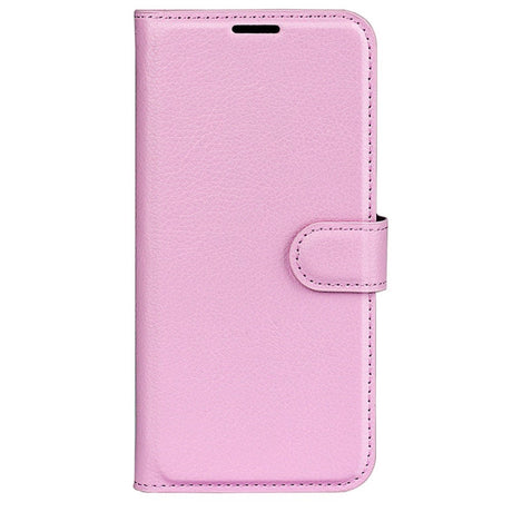 iPhone 16 Plus Litchi Leather Flip Cover m. Lommebok - Rosa