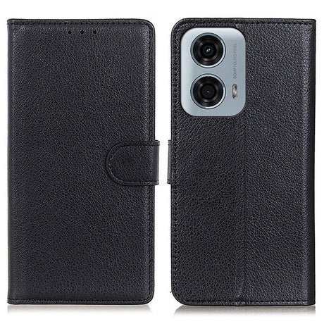 Vertical Litchi Texture Telefonveske til Motorola Moto E14 4G / G04 4G / G04s 4G / G24 4G - Svart
