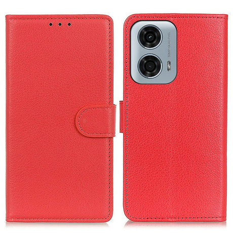 Vertical Litchi Texture Telefonveske til Motorola Moto E14 4G / G04 4G / G04s 4G / G24 4G - Rød