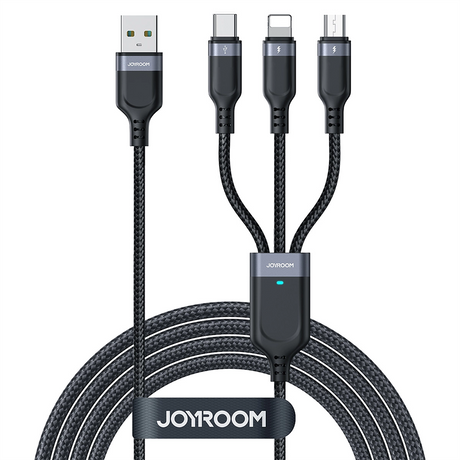 3-i-1 Nylon USB-C / Lightning / Micro USB Kabel - 30cm - Sort
