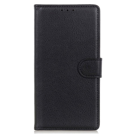OnePlus 12 Litchi Leather Flip Cover m. Lommebok - Svart