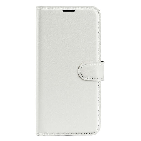 OnePlus 13 støtsikkert lommebokdeksel i skinn med Litchi-tekstur - hvit