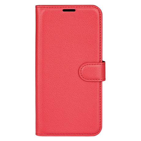 OnePlus 13 støtsikkert lommebokdeksel i skinn med Litchi-tekstur - rød