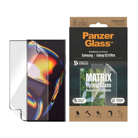 Samsung Galaxy S23 Ultra PanzerGlass Matrix Hybrid Glass Antibakteriell Ultra Wide Fit Skjermbeskytter - AlignerKit - Platinum Strength - Gjennomsiktig