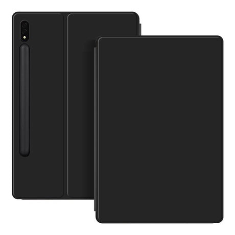 Samsung Galaxy Tab S8 / S7 Tri-Fold Leather Flip Cover m. Stylus pennholder - svart