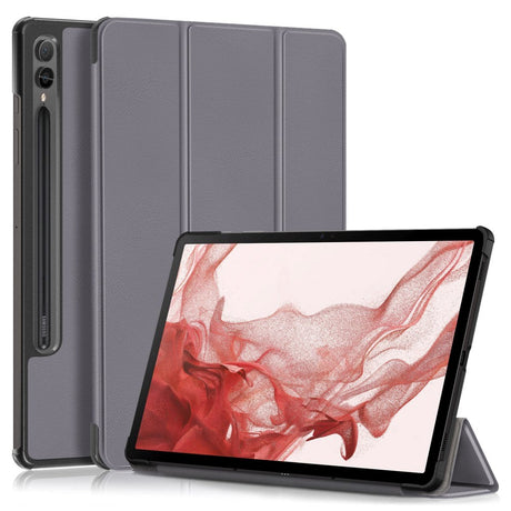Samsung Galaxy Tab S9 Tri-Fold Leather Flip Cover m. Stativfunksjon - Grå