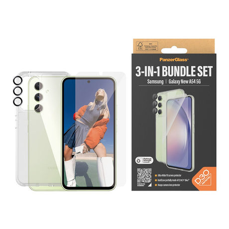 Samsung Galaxy A55 (5G) PanzerGlass 3-i-1-pakke m. EasyAligner - Skjermbeskytter (UWF) / D3O Bio Hardcase Cover / Hoops Kamerabeskyttelse - Gjennomsiktig / Svart
