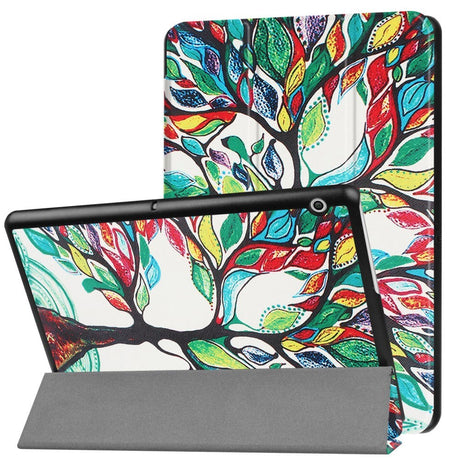 Huawei MediaPad T3 10 9,6" deksel - Tri-Fold Leather Cover "Tre Painting" Hvit / Grønn