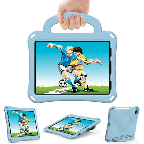 iPad Air 10,9" (2022 / 2020) / Pro 11" (2024-2018) Barnedeksel - Fotball - Stativ og håndtak - Lyseblå