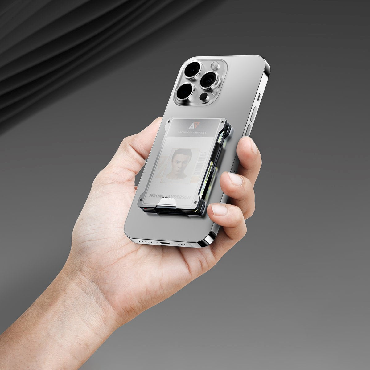 Kortholderen har innebygget magnet, som gjør at alle MagSafe-kompatible enheter automatisk vil plassere kortholderen på det beste stedet på baksiden av telefonen. Kortholderen vil også fungere på samme måte med MagSafe-kompatible deksler.