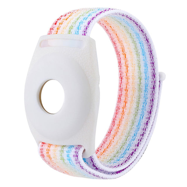 AirTag Stoff Barnestropp - Regnbue - Hvit