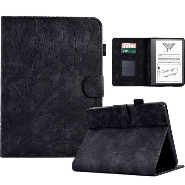 Amazon Kindle 11th Generation (2022) Leather Flip Cover m. Lommebok - Wood Imprint - Sort
