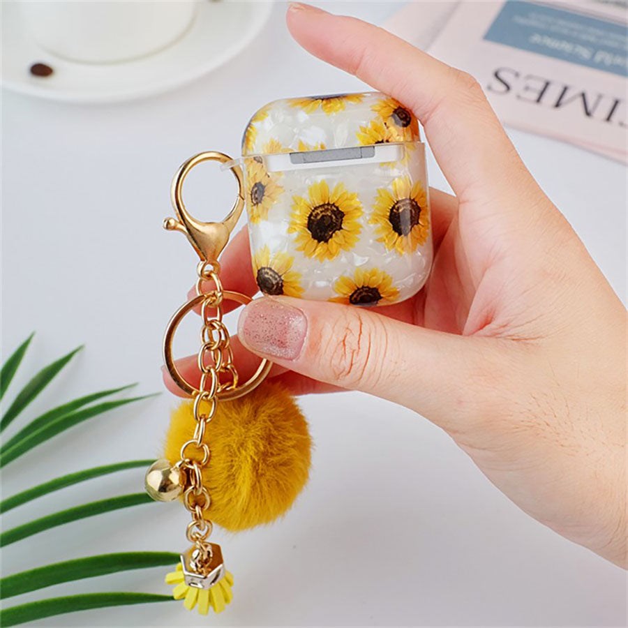 Apple AirPods (1 og 2. gen.) Plastdeksel m. Pelsheng - Solsikke