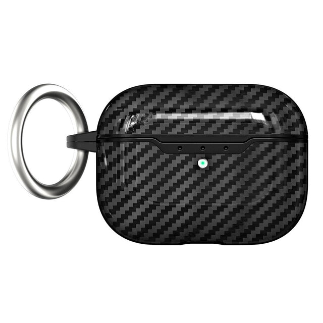 Apple AirPods Pro 2nd Gen (2022) Fleksibelt plastdeksel m. Carbon Look & nøkkelring - svart