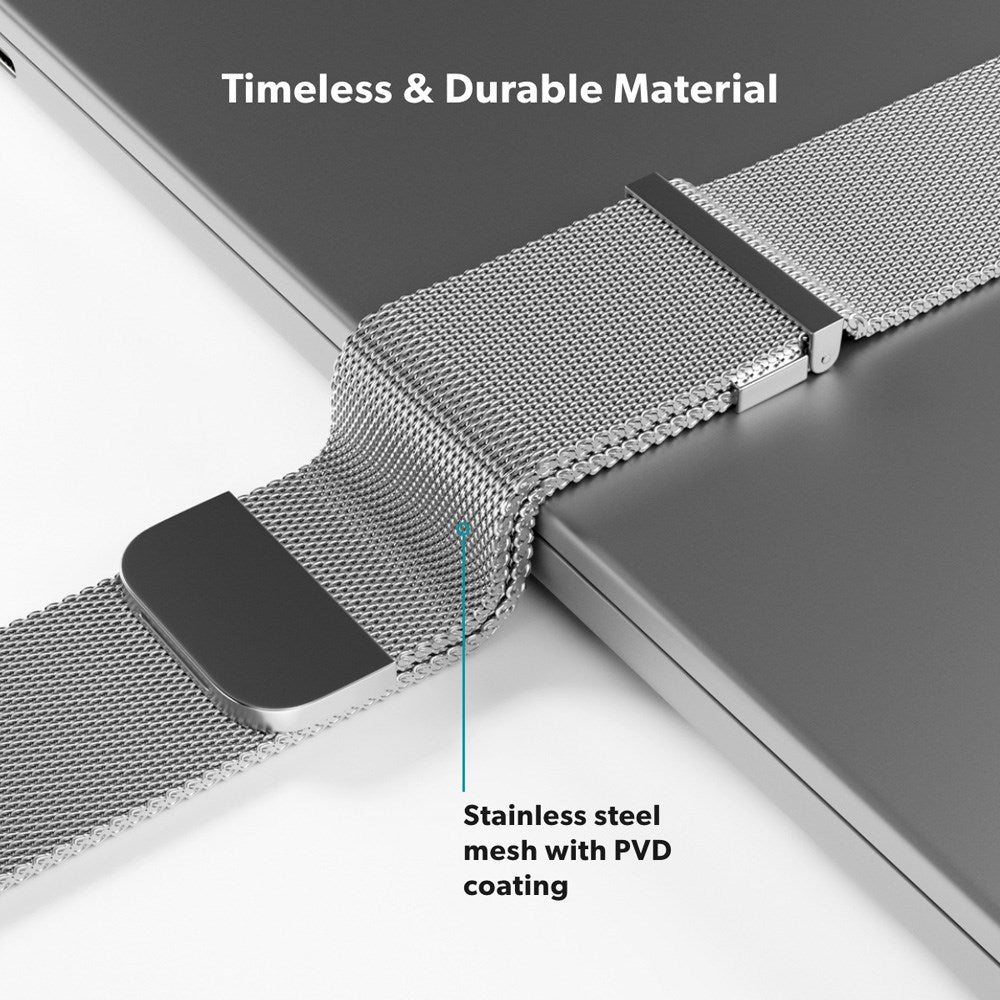 Apple Watch (38/40/SE/41/42 mm) Epico Milanese+ (pluss) stropp i rustfritt stål - sølv