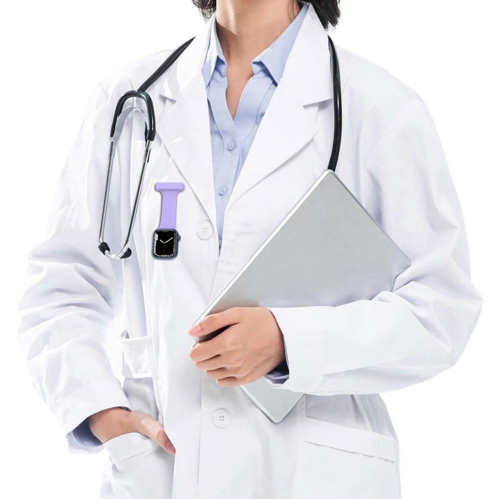 Denne Apple Watch-remmen er spesialdesignet for helsepersonell som trenger å bruke smartklokken på en alternativ måte. Stroppen består av en halv klokkerem som enkelt festes til klær ved hjelp av en sikkerhetsnål, slik at klokken kan henges fra brystet i stedet for å bæres rundt håndleddet.