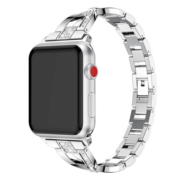 Apple Watch (38/40/SE/41/42 mm) Stålrem m. Rhinestone - Sølv