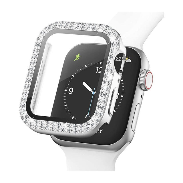 Apple Watch (38 mm) deksel av hardplast m. Innebygd skjermbeskytter - Sølv og Rhinestone