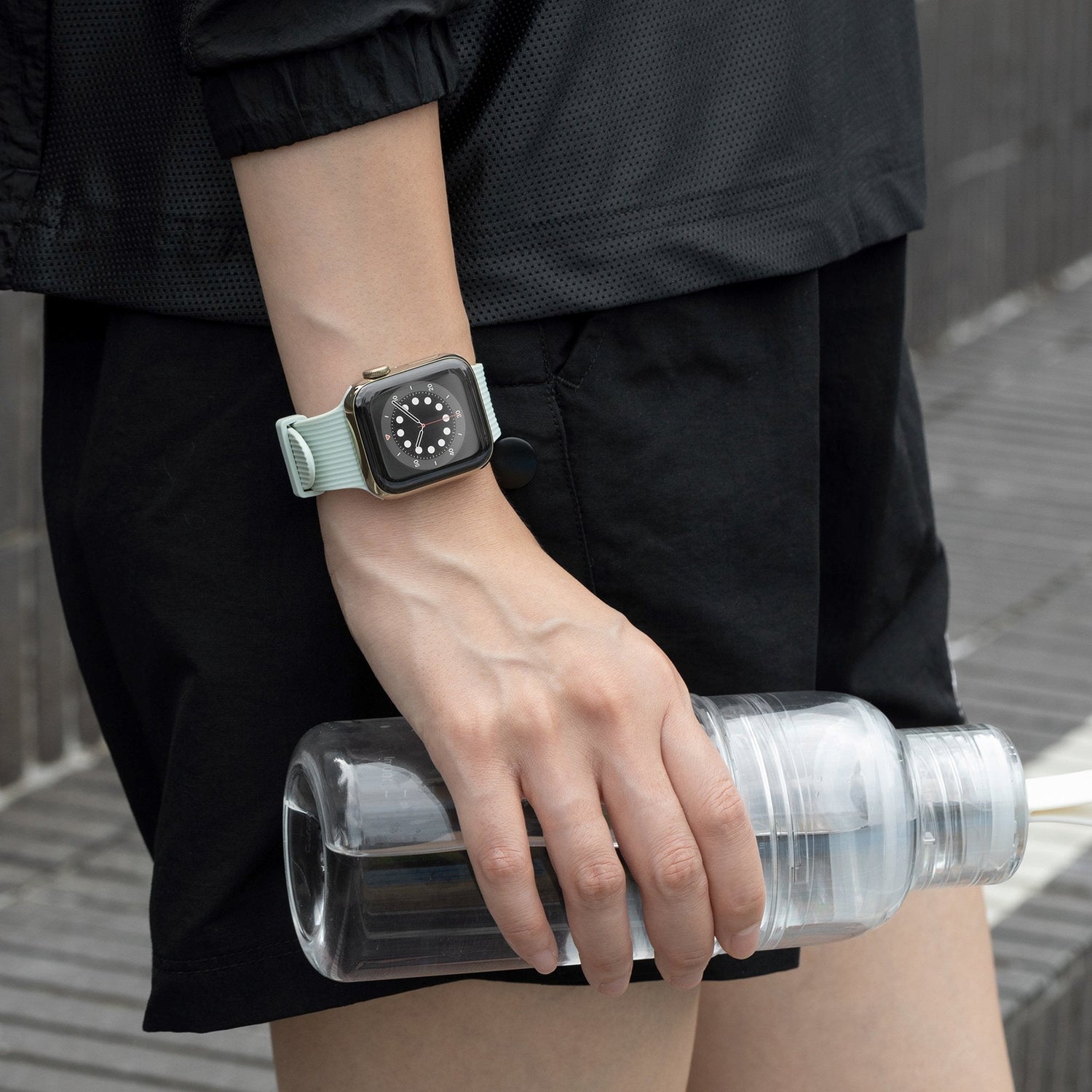 På grunn av det gjennomtenkte designet passer stroppen til Apple Watch både til kontoret og løpeturen. Det raffinerte designet med striper langs stroppen er elegant og bidrar derfor også til dens allsidighet.