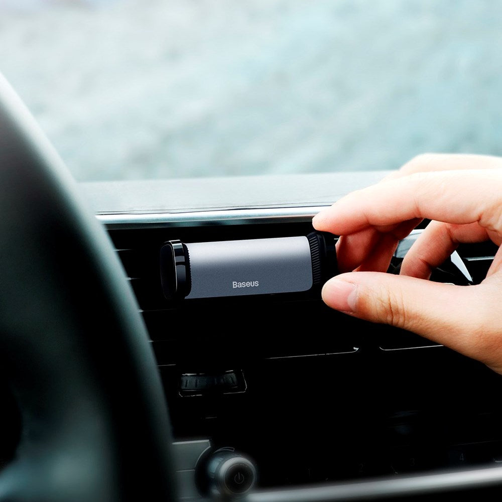 Baseus Steel Cannon Mobile Holder for bilens ventilasjonsgitter sikrer et pålitelig og stabilt grep på smarttelefonen din, slik at du kan navigere eller nyte musikk mens du kjører. Med sin fleksible 360° roterbare design og justerbare bredde, er den kompatibel med de fleste smarttelefoner på markedet.