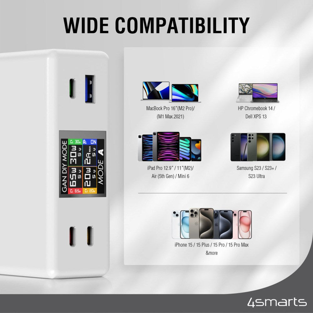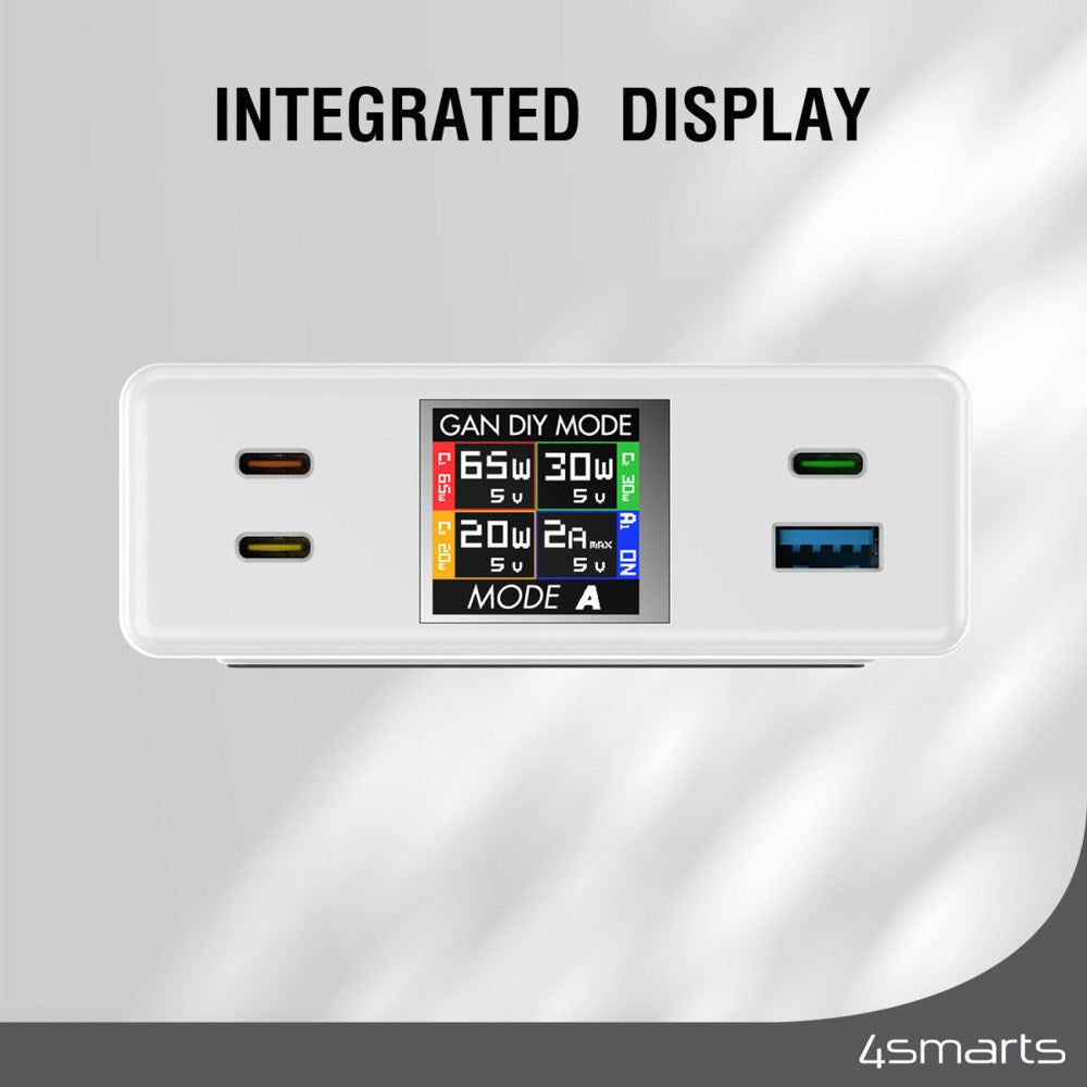 Bordlader - 130W / 3x USB-C & 1x USB-A - 4smarts GaN DIY Mode - Hvit4252011908059 |