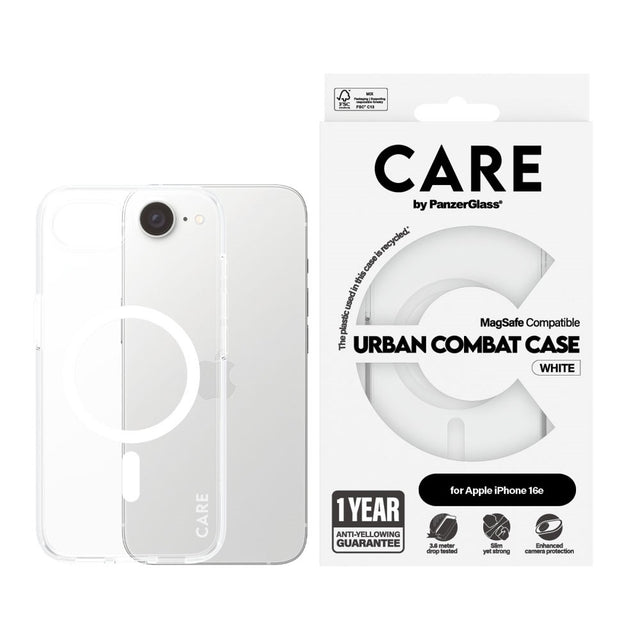 CARE by PanzerGlass iPhone 16e FLAGSHIP Urban Combat-deksel - MagSafe-kompatibel - Gjennomsiktig / Hvit