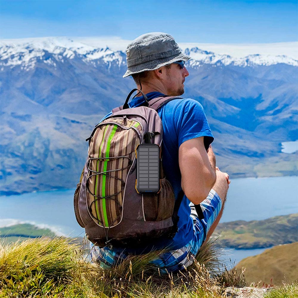 For å lade denne strømbanken på en miljøvennlig måte, plasser strømbanken i solen med solcellene vendt opp og lad batteriet. Den kan også lades med en kabel. Med denne Choetech powerbanken kan du lade opptil 2 enheter om gangen (10 watt fordelt på de 2 enhetene).