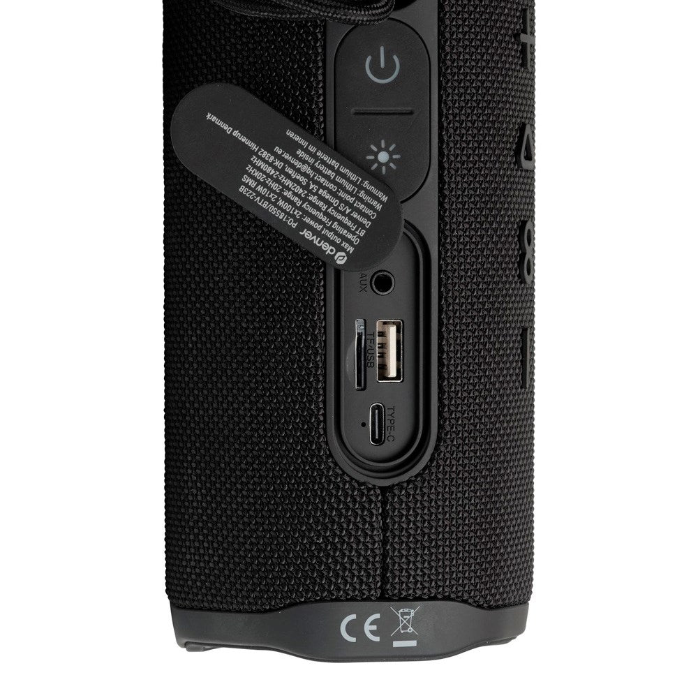 Oplev kraftfuld lyd, uanset hvor du er! Denne trådløse Denver Bluetooth-højtaler kombinerer solid lyd med stilfuldt lys og robust design.